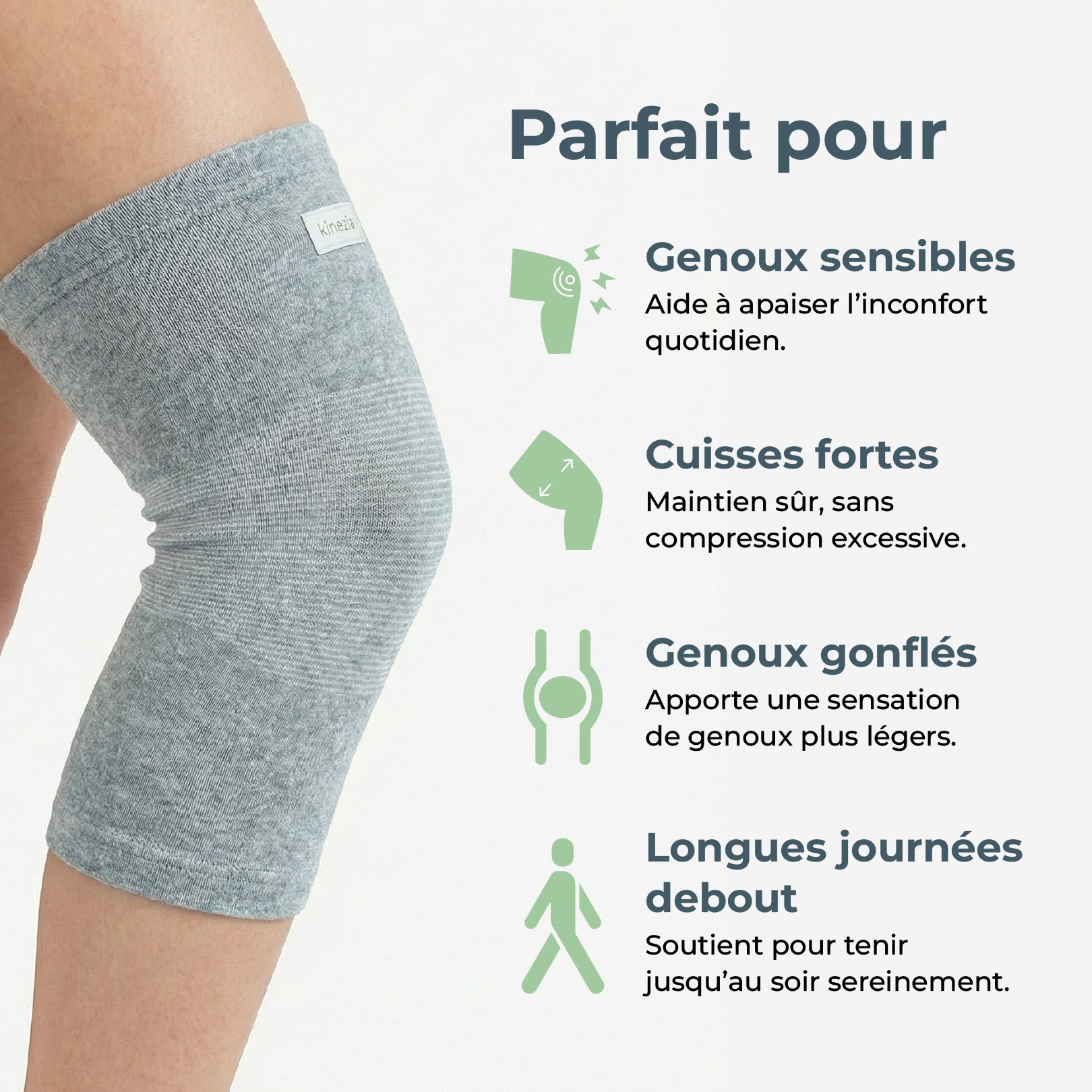 Kinezia soutient, stabilise et enveloppe le genou sans effet garrot. Parfait pour :